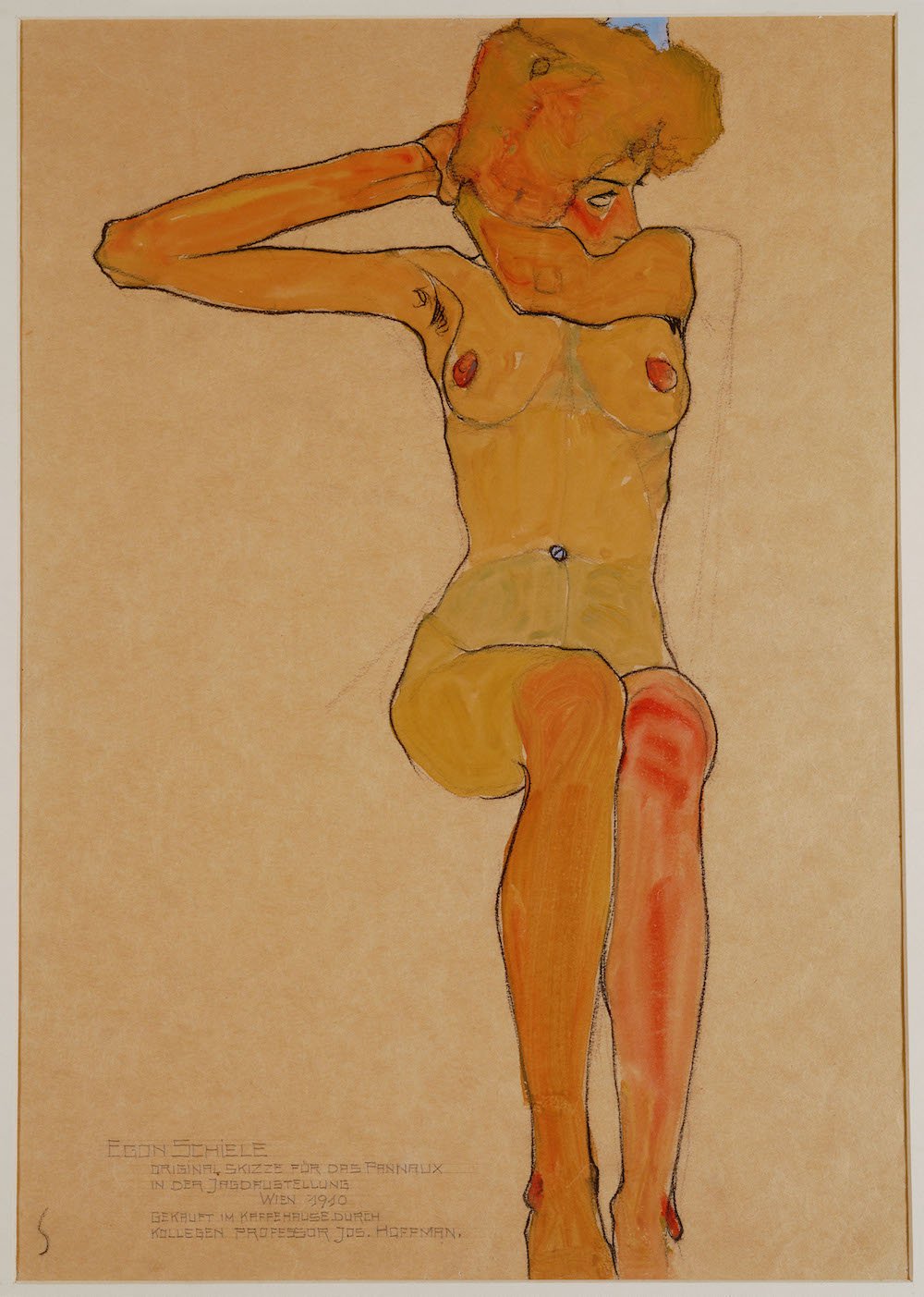 Egon-Schiele-1890-1918Seated-Female-Nude-with-Raised-Arm-Gertrude-Schiele-1910-cThe-Wien-Museum-Vienna Gertruda – siostra Egon Schiele