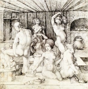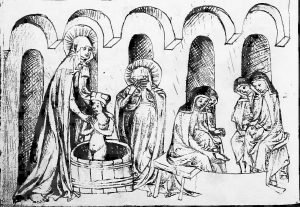 Bo Biblia Świętego Wacława IV zawiera bogate, kolorowe ilustracje, jak to smukłe, filigranowe i wydepilowane kobiety robią swoją łaziebną robotę. Włosy mają skromnie schowane są pod białym czepkiem, za to nonszalancki sposób noszenia sukienki śmiało eksponuje ich nagi biust. W dłoni panny dzierżą nieodłączny cebrzyk.